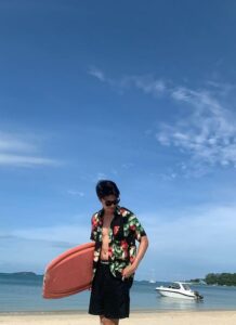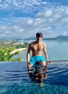 เลื่อนฟีดลงมา อันนี้ซี้ดเลย ชุดไปเที่ยวเล่นน้ำทะเลแห่งหนึ่ง ที่มาด้วยกางเกงขาสั้นสีแดง อวดหุ่นท่อนบนที่กล้ามแน่นมาก 6 pack แน่น เนียน แล้วก็ไร้ไขมัน ลีนออกจนเหลือกล้ามเนื้ออย่างเดียว แว่นตาดำทำให้หล่อเข้ม แล้วก็สีผิวที่ออกแทนหน่อย ทำให้ดูมีเสน่ห์ดูมีมิติมากกว่าคนอื่นทั่วไป